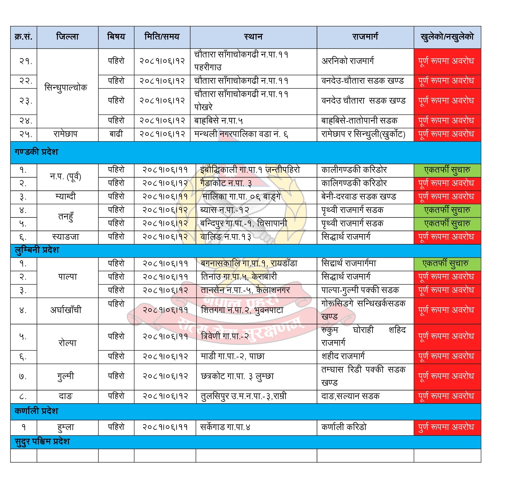 जनकपुरधाम : निरन्तरको अविरल वर्षाका कारण देशका विभिन्न भागमा राजमार्गहरु अवरुद्ध भएका छन्। बाढी पहिरोका कारण सडक बन्द हुँदा यात्रुहरु अलपत्र परेका छन्।